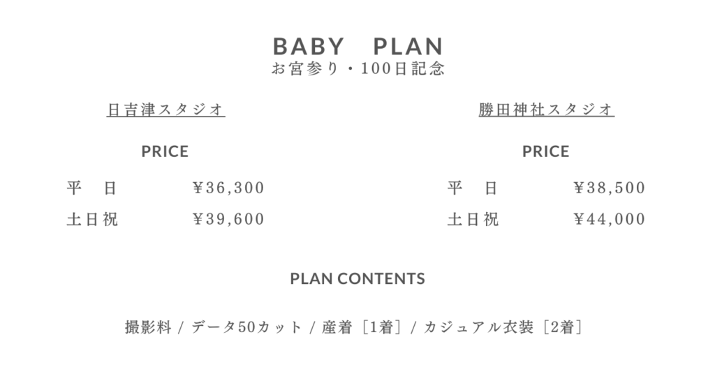howsのお宮参り撮影は、データが50カットついているプラン。