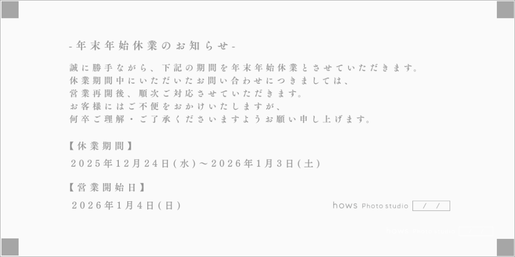 本年も hows photo studio をご愛顧いただき、誠にありがとうございました。
