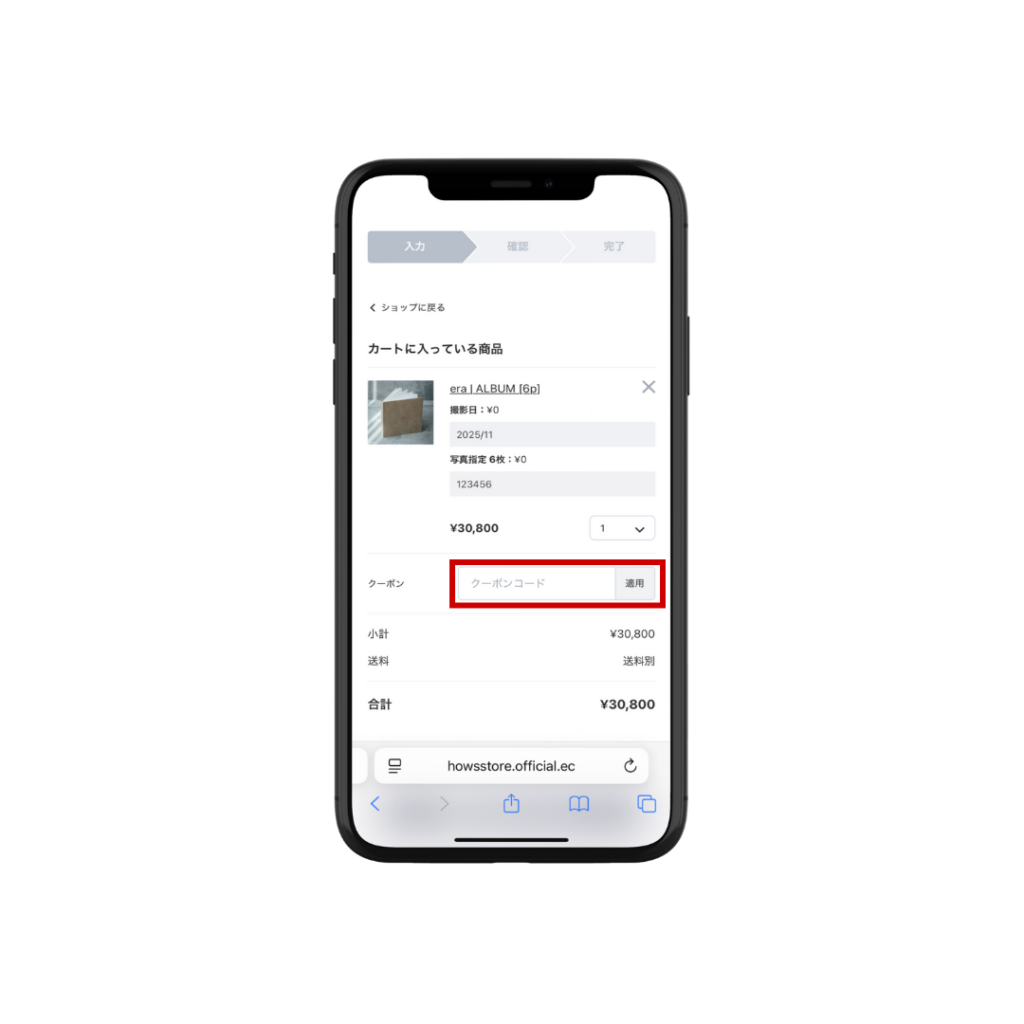 ご注文時、クーポンコード入力欄に